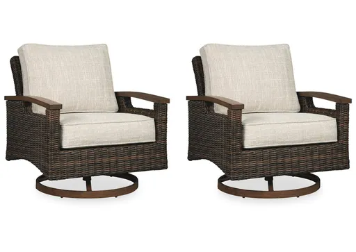 Pretty enough for trendy interiors, yet durable enough to weather the elements, the Paradise Trail outdoor swivel lounge chair rises to the challenge beautifully. Handwoven resin wicker over rust-proof aluminum merges high style with low maintenance. Rest assured, though the exposed armrests and swivel base look remarkably like wood, their sturdy aluminum construction is perfectly suited for alfresco living. Plush seat cushions wrapped in high-performing Nuvella® fabric aim to please.