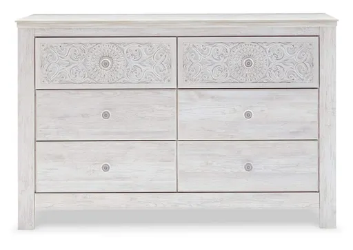 If it’s coastal chic or cottage quaint style you long for, the Paxberry whitewashed dresser invites you to go to town. Its distinctive weatherworn finish conveys an easy-breezy sensibility, perfect for a restful bedroom retreat. Tastefully edited lines and medallion drawer pulls give this attractively priced dresser a high-end aesthetic.
