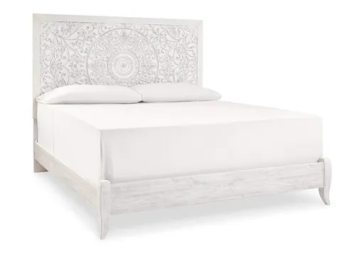Showcase your trend-setting spirit with the Paxberry bed. Inspired by bohemian tapestries, exquisite carved medallion pattern is a testament to boho-chic style. Whitewash finish sets a foundation for a room bursting with personality.