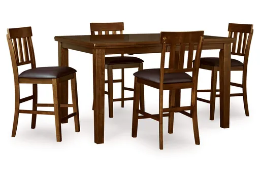 With a rich rustic beauty that is sure to transform the atmosphere of any dining area, the “Ralene” dining collection features a distressed and burnished dark brown finish beautifully complemented by the comfortable faux leather upholstered chair and bench seats.