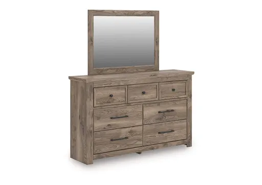 Classically chic. This dresser with mirror marries traditional design with modern accents. Its deep brown finish recalls the authentic touch of hickory grain for a rich look and feel. Assorted drawers neatly store your essentials in charming fashion. Sincere in its styling, this piece sets the scene for a warm, welcoming vibe in your bedroom.