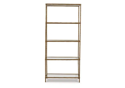 Classic in design with a dash of textural appeal, the Ryandale bookcase provides endless possibilities for displaying your decor. Five shelves offer the perfect perch for potted plants, books or your favorite framed artwork. The frame's antiqued brass-tone finish has a rustically luxe look that remains versatile, suiting spaces from casual to contemporary.