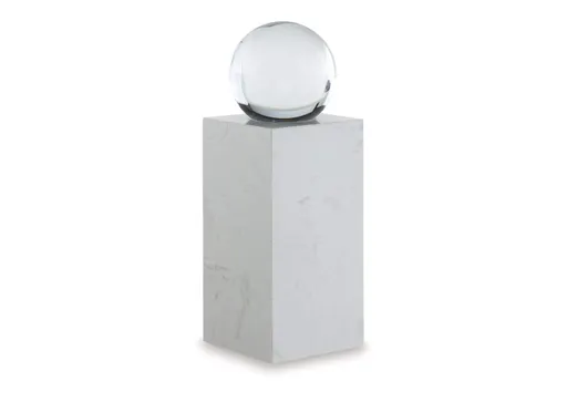 The exquisite Sellner sculpture effortlessly combines the purity of clear crystal with the timeless elegance of white marble. Contrasting textures and materials create a captivating visual experience, making it a striking focal point in contemporary settings. It's the perfect piece for those who appreciate minimalist design and the beauty of natural elements.