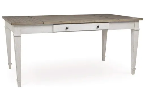 Set the scene for coastal chic or modern farmhouse living with the Skempton dining room table. Clean-lined, simply striking table doubles the charm with a brown tone top with plank effect, paired with a grayish white base with rub through effect for timeworn appeal. Multi-functional dining table features two convenient side drawers and a storage bin on each end for maximum use of space. Styled to comfortably seat six, this table makes room for one and all.