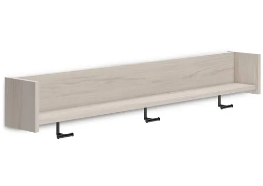 The sleek, minimalist look of the Socalle wall-mounted coat rack is fashionably contemporary and easy to integrate in a variety of living spaces. Three sturdy hooks and a spacious shelf are your new go-to spot for hats and scarves or displays. Whether by the front door or back entry, this coat rack keeps all-weather essentials well within reach.