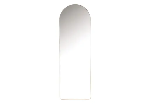 This full-length floor mirror features a striking arched silhouette with a minimalist metal frame. Designed for vertical mounting or floor placement, its slim profile delivers a clean, contemporary look. The expansive glass surface provides a complete head-to-toe reflection, ideal for dressing areas, bedrooms, or hallway displays. The curved top softens its modern edge, making it a versatile addition to a variety of interior spaces.