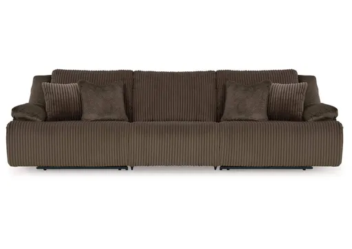 Experience unparalleled comfort with the Top Tier reclining sectional sofa. It’s a stylish and invitingly soft look—made all the more appealing by cozy corduroy cushions that feel great and add a touch of texture. The rich chocolate brown upholstery effortlessly blends into your decor, making it a gorgeous addition to your home. So sit back and unwind in this spacious set, perfect for gatherings with friends and family.