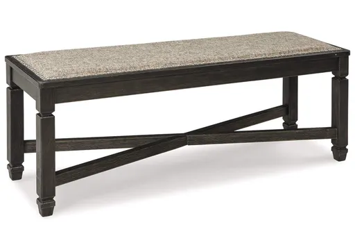 Invite your family into the heart of your home with the Tyler Creek upholstered dining room bench. Its X-shaped stretcher and tapered legs, in a beautifully textured black finish, provide a sturdy foundation. The bench's heavily woven fabric has a quality feel-good touch, while its silvertone nailhead trim is decorative without all the fuss. This is trend-right urban farmhouse style.