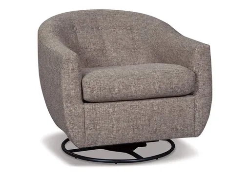 Take a turn for the better with the upscale Upshur swivel glider accent chair. Upholstered in a richly woven taupe fabric, this contemporary beauty with tufted barrel back provides a smooth 360-degree swivel that’s such a nice twist.