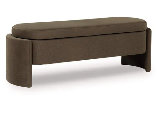 There’s more to the Vavuniya upholstered storage bench than what meets the eye. Its soft heathered brown upholstery provides a comfy sitting area. Lift the hinged seat to reveal lots of storage for pillows, blankets or other essentials. Coupled with its unique capsule shape, this bench is full of form and function.
