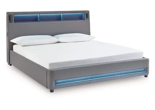 Snooze in style with this king upholstered bed. It brings delightful function to winding down before bedtime, with an adjustable LED reading light on each side. And for added flair, multicolored ambient lighting brings an ultra-cool vibe to the overall look. Combining modern convenience with captivating design, this bed revamps your restful retreat like never before.