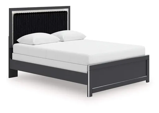 If glitz and glam are your jam, you’re gonna love this queen upholstered panel bed. Gleaming glitter and dazzling chrome-tone touches are paired with tufted black faux fur for a stunning pop of pizzazz. Loaded with chic flair and serious sparkle, it's a simply splendid way to wake up your inner sanctum’s style.