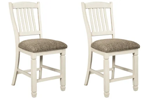 Dine in the comfort and rustic charm of this unique bar stool with rake-back design. The cushioned seat, upholstered in a heavy woven fabric, is the perfect place to sit and linger. Textured antique white finish serves up a vintage look with ease.