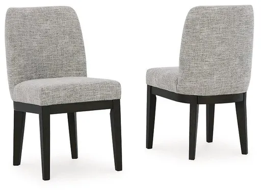 Dressed to thrill, this simply stunning armless dining chair offers a high-design look at a down-to-earth price. Ultra sleek lines are accentuated with a dark waxy brown oak-tone finish that’s so easy on the eyes. Suitably upholstered in a tweed-like neutral fabric, the softly contoured back design is tailor-made for comfort. Whether it's part of a dining arrangement or used as extra seating, it has a timeless look that’s made to last.