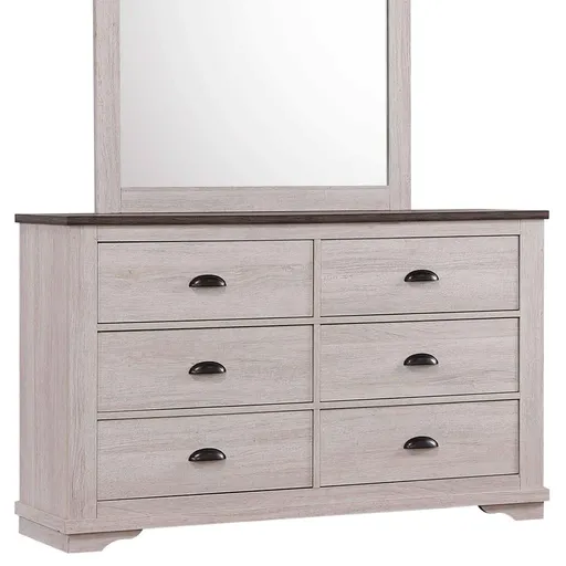 paxberry - six drawer dresser - medallion drawer pulls - whitewash