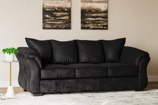 Talk about fine lines and great curves. That's the beauty of this standout sofa‚ made to suit your appreciation for clean, contemporary style. A striking flared frame, comfy pillow top armrests and an ultra-soft upholstery that holds up to everyday living complete this fashion statement.