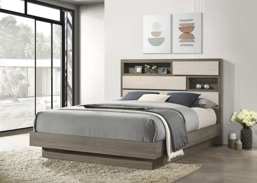 Discover contemporary elegance and smart design with this queen bed, part of a sophisticated bedroom collection. The bed features a stylish bookcase headboard with a hidden compartment, perfect for storing valuables or keeping bedtime essentials within reach. Crafted from durable melamine with a modern two-tone finish, this bed exudes both charm and practicality. Designed for lasting support, it offers a sturdy foundation for your mattress. Transform your bedroom into a haven of style and functionality with this innovative and elegant bed. Key Features: • Queen bed with a modern two-tone melamine design • Bookcase headboard with a secret compartment for discreet storage • Durable construction using melamine, particle board, and MDF for lasting quality • Sturdy frame construction ensures long-lasting support and durability • Contemporary design adds a touch of sophistication to any bedroom decor