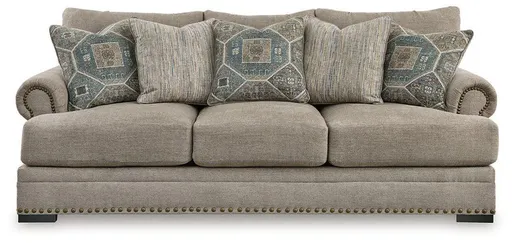 Looking to enhance your home's visual appeal? This sofa offers sophisticated design, comfort and elegance with tonal colors, roll arms and nailhead accents. Enjoy optimal coziness as you nestle into luxurious soft upholstery and feather-blend cushions. Perfect for modern spaces, it's just the spot to sit back and relax in style.