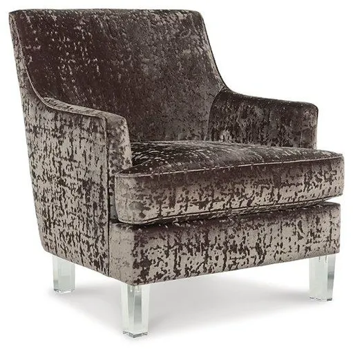 This accent chair with shelter arm styling merges contemporary and traditional styling in the most beautiful way. The combination of polyester crushed velvet upholstery and tapered clear acrylic legs makes for one cool contrast. Combining comfort and fashion-forward design for the modern enthusiast.