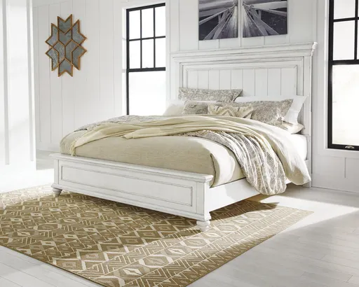 Give your retreat vintage charm with this king panel bed. In a beautifully distressed whitewash finish, you'll love the headboard's grand style featuring a picture framed panel. Generously scaled moulding from top to bottom, along with bun feet give this bed character—evoking the feel of a quaint cottage escape. More About This Product Product Details