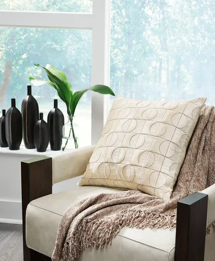Looking to add a touch of luxury to a sofa or bed? This accent pillow brings touchable texture wherever you place it. The velvety-soft cover is embroidered with a chic geometric design, giving it an art deco-inspired flair. And with its versatile cream hue, this decadent accent pairs well with existing decor.