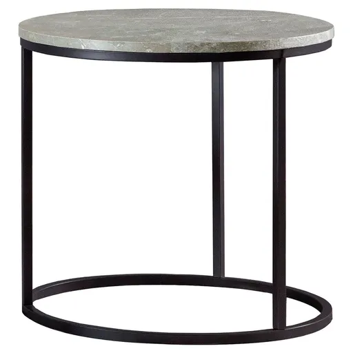 This sleek end table combines minimalist design with modern materials to create a striking accent piece. Featuring a round faux marble tabletop in grey, the piece is complemented by a sturdy gunmetal metal base. Its compact size makes it perfect for smaller spaces, while its refined design adds a touch of sophistication. Ideal for placement beside an armchair or sofa, this end table is a versatile choice for contemporary living rooms or bedrooms. Key Features: • Round end table with a minimalist design to fit modern living spaces • Faux marble tabletop in grey for a sleek, easy-to-clean surface • Gunmetal metal frame provides durability and a contemporary aesthetic • Perfectly sized for small spaces, ideal for a vase or small decorative item • Versatile design complements sofas, armchairs, or bedside setups • Light and airy appearance enhances the modern style of your room