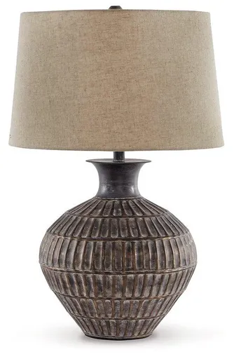 With the this table lamp, you can cast a well-lit glow any time of day in style. Teeming with textured metal in a wide, shapely base, the bronze-tone gives that pop of casual chic flair you’ve been looking for. Product Details Made of antiqued bronze-tone metal with fabric modified drum shade 3-way switch 1 type A bulb (not included); 150 watts max or CFL 25 watts max; UL Listed Assembly required Clean with a soft, dry cloth Due to the finishing process of this product, some variations may occur