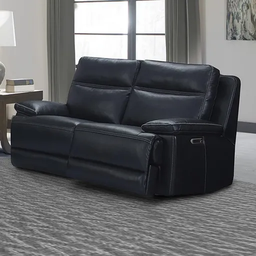 Paxton Collection by Parker House. Navy finish. Power headrest. Power lumbar. Patent pending on and off USB with home button. High quality mechanism and motor. 1.8 to 2.2 Density Foam. 100% Luxury foam cushion. Fully padded foam wrapped hardwood frame. Removeable backs