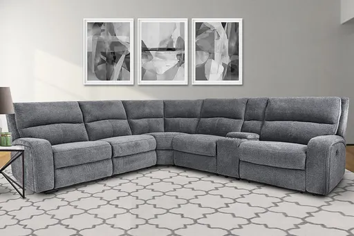 Even commercials are more tolerable when you're relaxing in the plush comfort of this six-piece sectional seating group. You'll love the luxury of its two power recliners on each end that feature power headrests. Between those, you'll find and armless recliner, and armless chair, a corner wedge and a multifunctional storage console with cup holders.