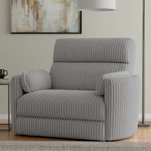 Fashionable and functional, this stylish XL Power Glider Recliner is perfect for relaxing at the end of a long day. This seat-and-a-half recliner features a soothing gliding motion and smooth power reclining for ultimate comfort. Oversized chair-and-a-half built for two! Integrated USB charger and patent-pending Parker Switch technology to manage power draw. Sumptuously soft chenille fabric cover is effortlessly elegant. 100% Luxury high density foam cushions wrapped in fiber. Luxurious foam (1.8- to 2.2-density) provides plush cushioning. Chaise-style footrest provides continuous leg support. Fully padded foam wrapped Hardwood Frame. Removable Backs. Soothing gliding motion and smooth power reclining for ultimate comfort. Conveniently located intelliswitch hides inside the arm and provides easy USB power for devices without power draw. Includes 2 comfort pillows for additional support. Pillows are packed underneath the chair. 350 LB weight limit. Ready to easily mount any FreeMotion® Bracket & Battery.