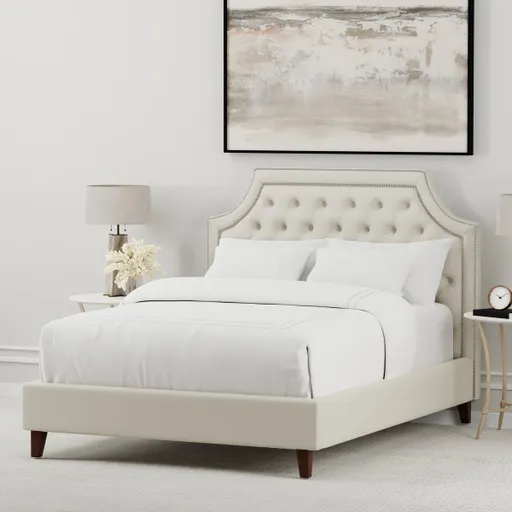 A true dream come true, this luxurious upholstered bed is a statement-maker in every way. Worthy of being the focal point of the bedroom, it creates a high-end look with classic design elements that will always be in style. Tailored in and exquisite fabric cover, it features a matching footboard and side rails distinguished by superior construction features and upscale design details. Its plush layers of padding and touchably soft fabric ensure you are comfortably supported as you lounge in bed or enjoy a favorite book or movie.