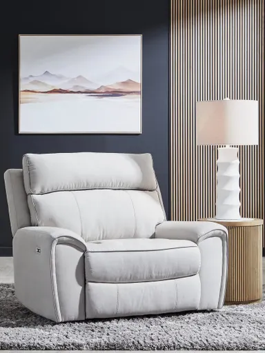 Smart, clean and ultra modern, this power recliner is utterly in vogue. You'll love its indulgent cushions and contemporary bustle back styling. The sumptuous fabric, accentuated with contrasting welting, easily blends with your decor. And with reclining at the press of a button, this piece proves chic design and superb comfort go hand in hand.