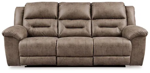 For those that love the cool look of leather but long for the warm feel of fabric, this power reclining sofa delivers both with ease. Its high-performance padded faux leather is remarkably durable and easy to clean, just the thing for family spaces. When it’s time to relax, the one-touch power control puts the perfect position at your fingertips. Channel-stitched back cushions provide indulgent lumbar support for maximum seating comfort—not to mention fashion-forward flair.