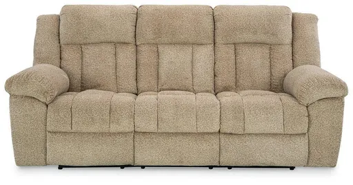 Big, bold comfort. Game time and movie nights meet their match with this power reclining sofa. Made for ultimate indulgence, an extra-deep seat encourages you to sit back and bliss out. Customize the recliner and headrest to find your ideal viewing position with effortless one-touch controls. And with plush upholstery in a trendy hue, you won’t need to sacrifice style for cozy seating.