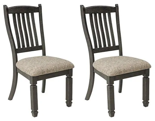 Invite your family into the heart of your home with this upholstered dining room chair. Slat back and tapered legs are a sturdy frame. Black finish is beautifully textured. Heavily woven fabric on the boxed cushion seat has a quality feel-good touch. This is trend-right urban farmhouse style.