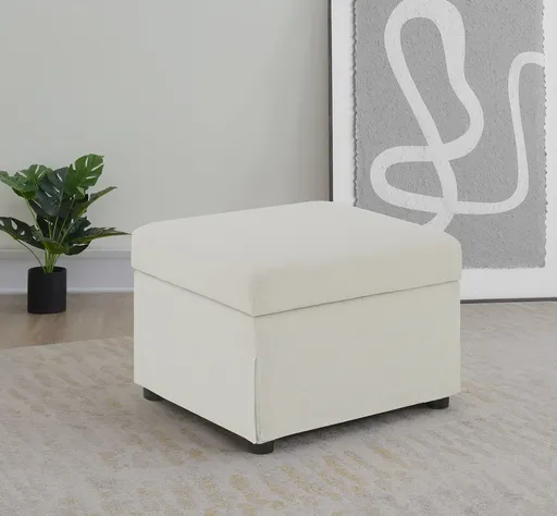 This versatile storage ottoman enriches your living space with stylish functionality. Upholstered in soft, neutral fabric, its hydraulic lift top reveals hidden storage perfect for stashing blankets, magazines, or personal essentials. Use as a footrest, extra seat, or accent piece. Designed to complement modern or traditional décor, it effortlessly enhances comfort and organization in any room. Key Features: • Chic storage ottoman offering discreet organization • Beige fabric upholstery for a soft, neutral touch • Hydraulic lift top ensures smooth, easy access • Hidden compartment ideal for blankets or magazines • Crafted with quality materials for lasting support • Perfect as a footrest, extra seating, or accent piece