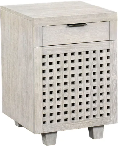 Add a stylish punctuation point to your space with our Ginny chairside table. A fresh, white-washed, wire-brushed finish on the lattice front is complemented by bronze painted metal hardware. Stow ...