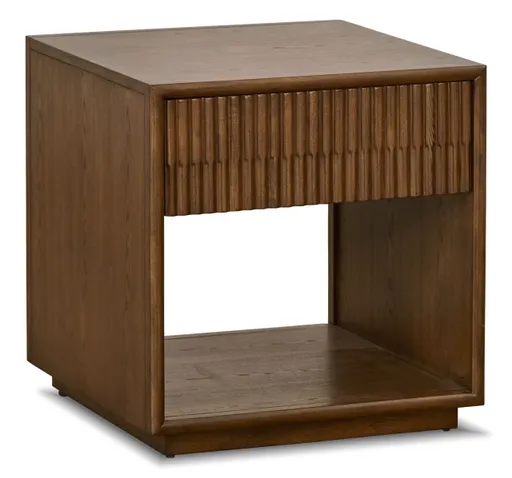 Vertical reeding in a medium brown finish adds depth and contemporary character to the piece, creating a unique and visually captivating appearance. One dust-proofed drawer with tried-and-tru...