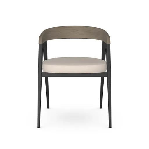 The Carmela dining chair is a true expression of Scandinavian design. Its curved wooden backrest gracefully extends to form armrests, creating a sense of continuity and elegance. The plush upholstered seat enhances its inviting appeal, while sleek metal legs add a touch of refinement to its overall aesthetics. A perfect balance of style and comfort, the Carmela chair will undoubtedly enhance your living space!
