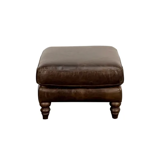 The Chesney ottoman has ball turned wood feet, pillow top cushion and is featured in the 100% York Chestnut Italian leather.