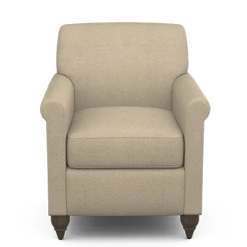 The perfect elegant piece to accentuate your home, the picturesque petite roll arms of the Stella chair invite you in. Take a seat atop a removable and reversible cushion that is supported by our patented Blue Steel Spring system – backed by our lifetime guarantee. Handcrafted with a durable frame and upholstered with careful detail, Stella is designed to last. The tight back and turned wood legs give this quaint chair a modern flair. Elevate your home with the chic style of Stella.