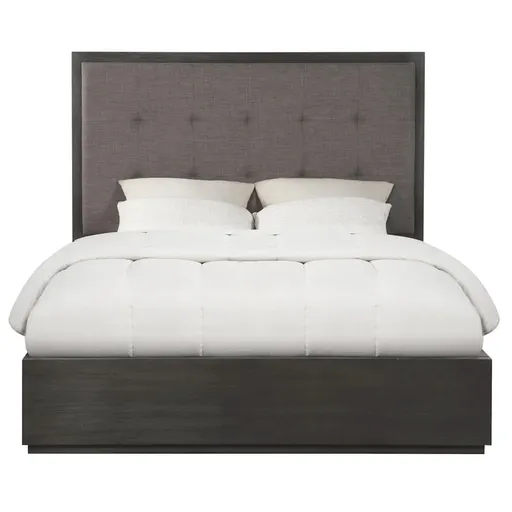 The sleekly tailored Mercer collection makes a striking first impression with bold proportions, crisp, modern lines and a weathered finish. Smartly accented with top-mounted nickel plated pulls, concealed footboard storage, and a floating plinth base. Available in Basalt Grey.