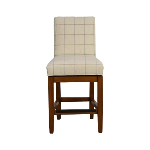 The Mann swivel counter stool features a cushioned seating with armless back in the Weekend Spa fabric and a wood frame in the Chateau finish.