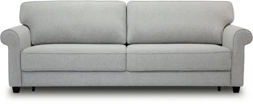 The Casey king size sleeper sofa has rolled arms, wood tapered legs and transforms into an all in one sleeper for guests.
