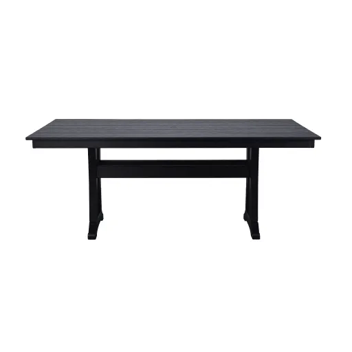 Create a relaxing outdoor dining atmosphere with the rectangular Farmhouse Trestle 37 x 72 Dining Table in the Black finish. This table seats up to six and features a sleek plank tabletop with space for plenty of legroom underneath. This classic all-weather table pairs well with a variety of POLYWOOD dining chairs to fit the look of your outdoor space.