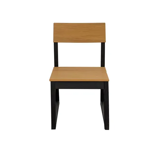 The Edge side chair is a modern style chair with clean lines and standard seating size. This seat is designed to tuck neatly underneath all Polywood dining tables. The chair is featured in a Black finished frame with Natural finished seating area. The chair can withstand strong winds and storms and has low-maintenance upkeep.