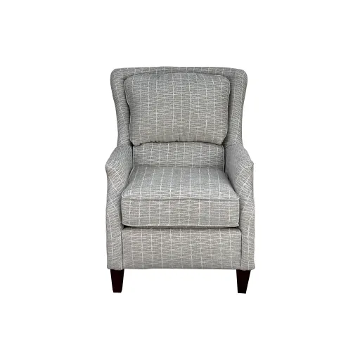 The Loren II accent chair has dark wood tapered legs, flared high back with inset cushions and is featured in the Harmonia Ash fabric.