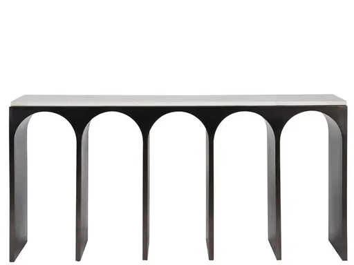 The Moda Console Table stands at the forefront of modern design, blending a sleek White Banswara top with an Aged Satin Pewter body. Its design features exaggerated curves, slender legs, and a clever interplay of negative and positive space, crafting a piece that's as visually engaging as it is elegantly functional. This table embodies contemporary sophistication, perfect for enhancing any forward-thinking interior.