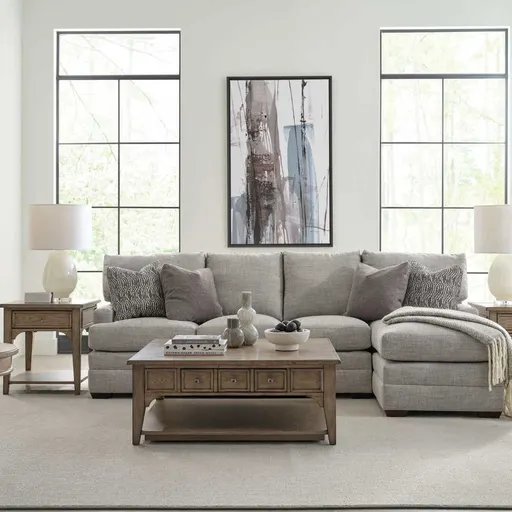 Constructed from split-heart cathedral white oak veneers. Rich Latte finish enhances natural wood grain. Single drawer with dark nickel finish hardware for discreet storage. Lower shelf provides additional display or storage space. Casters allow easy mobility for versatile placement. Refined yet practical centerpiece for any living space.