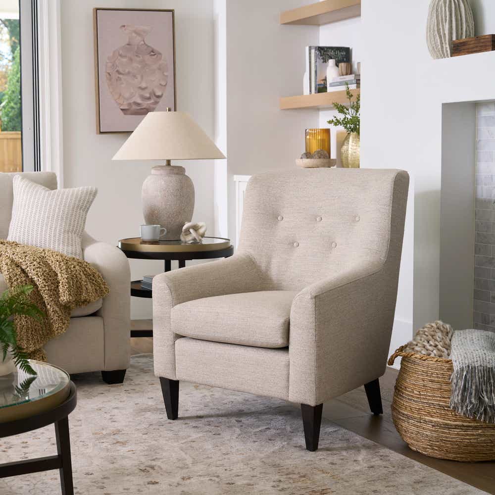 $695.00Living Spacesapollo multicolor fabric swivel accent armchair with espresso finish | made in the usa | slipper | armless | loungeSaveAdd to List